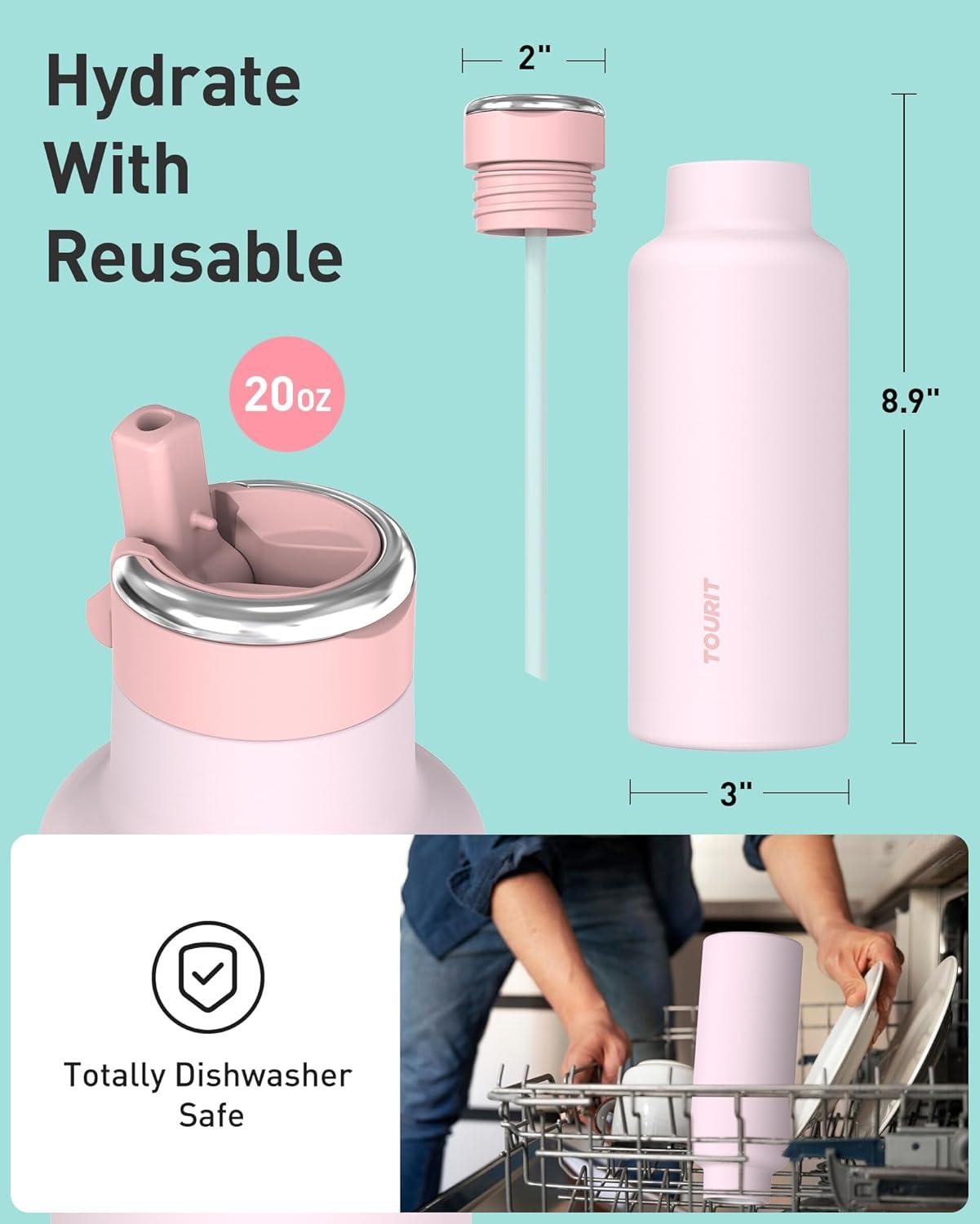 Save up to 40% on TOURIT 20oz Insulated Stainless Steel Water Bottle with Straw & Handle, Double Wall Vacuum Leakproof BPA-Free Thermos for Sports Travel, Pink(4-Orange) styles during our end-of-season sale.