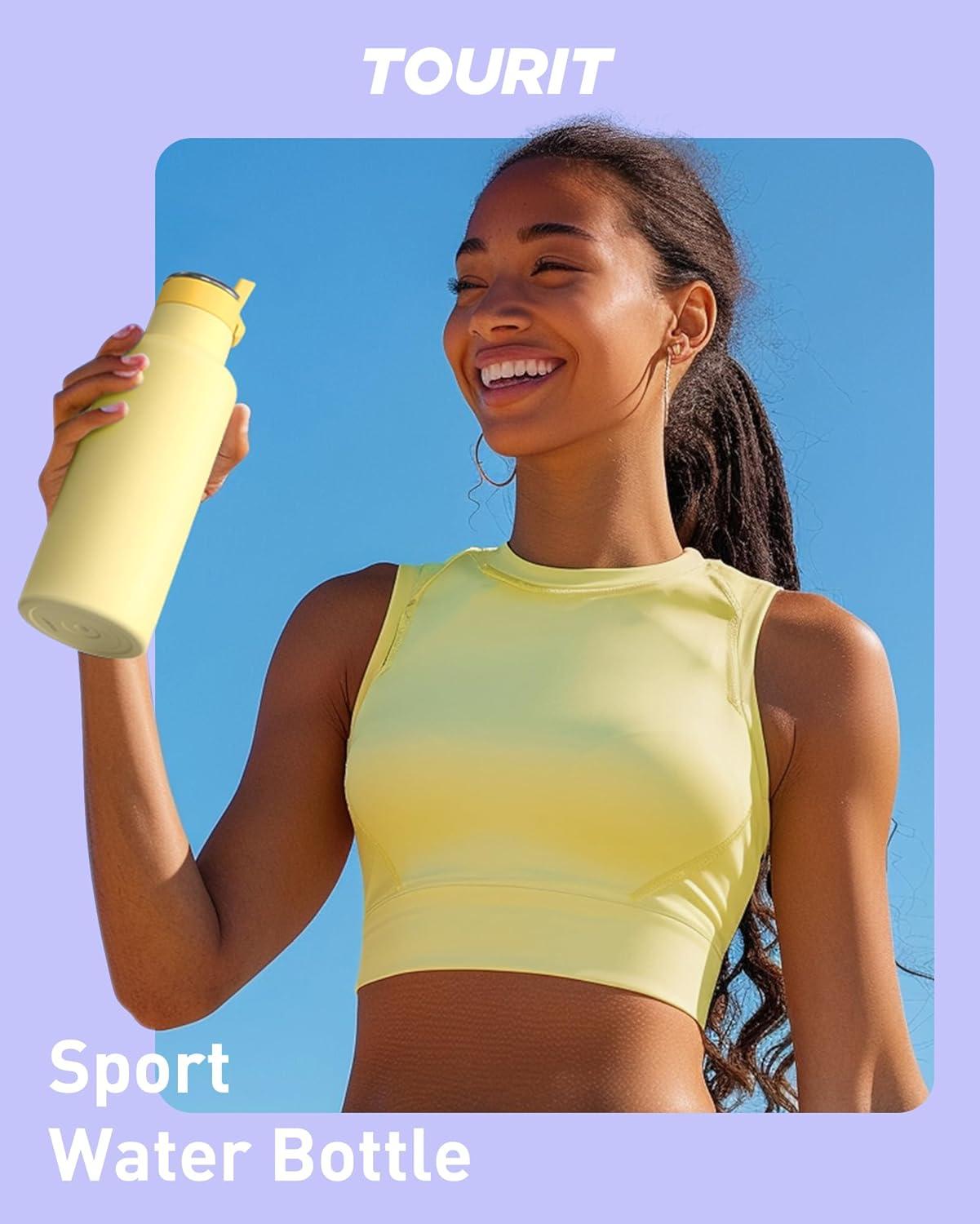 Leak-Proof Design for Active Lifestyles: Stay active without worries! The TOURIT 20-ounce water bottle is equipped with a flex straw and a metal carry handle, making it perfect for on-the-go hydration. Its secure seal prevents spills and leaks, ensuring you can toss it in your bag without a second thought. Whether you're commuting, hiking, or just running errands, this sports water bottle provides effortless access to your favorite drinks whenever you need them.