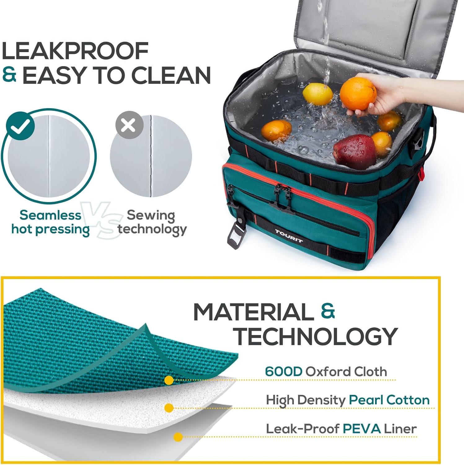 TOURIT Collapsible 48-Can Leak-Proof Insulated Rolling Cooler with All-Terrain Cart, Upgraded Fixtures and New Wheels Suitable for Beach, Picnic, Shopping(A3:Green)