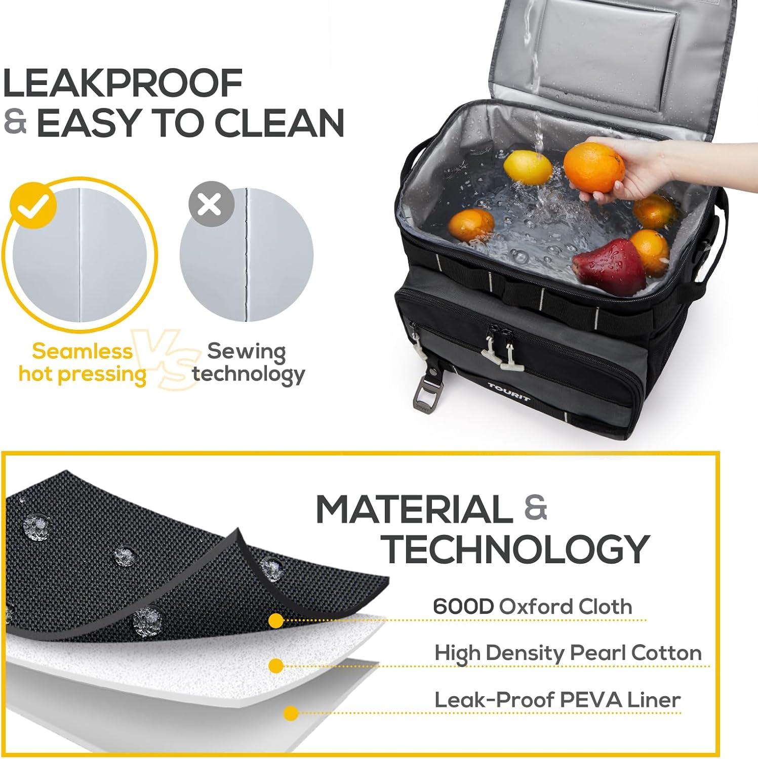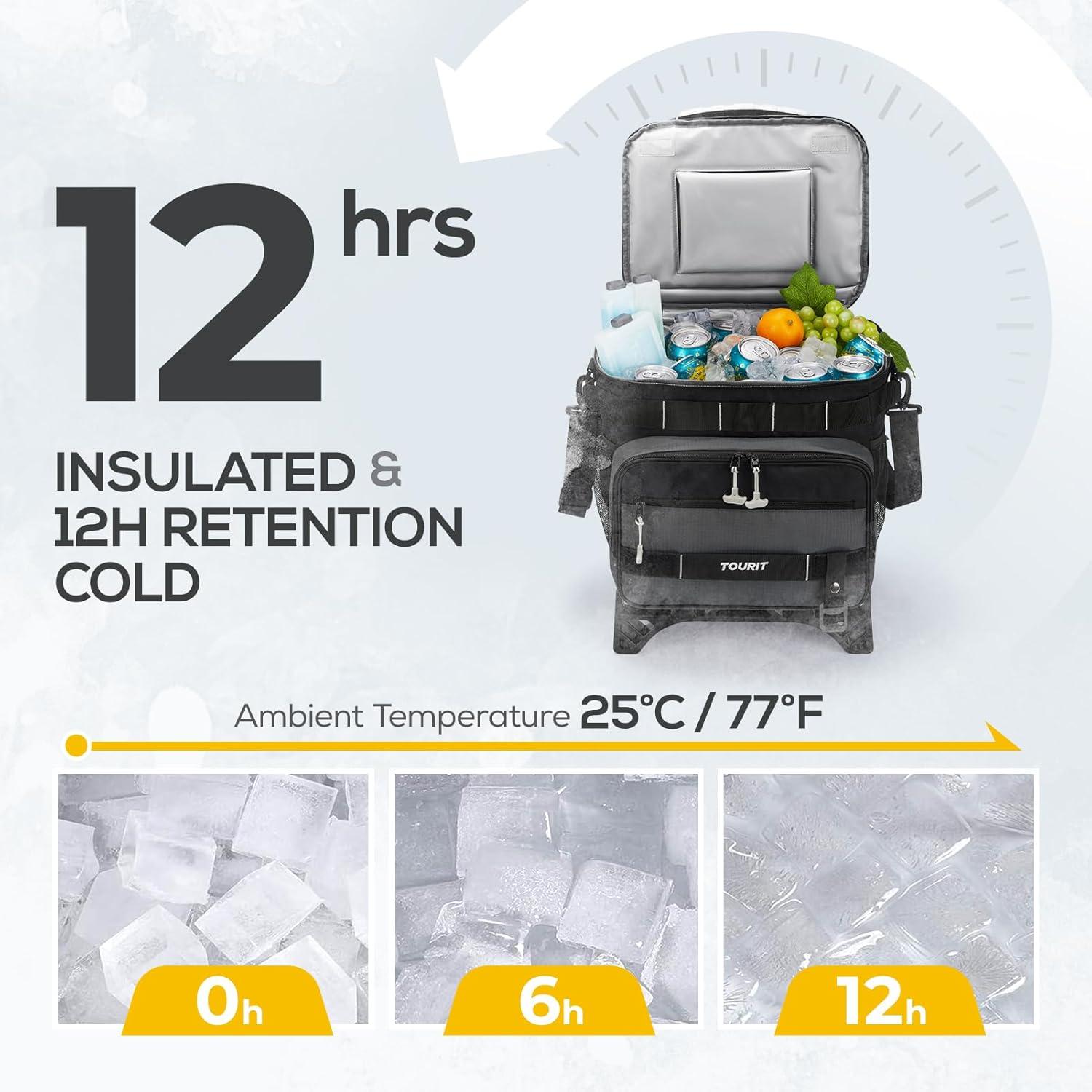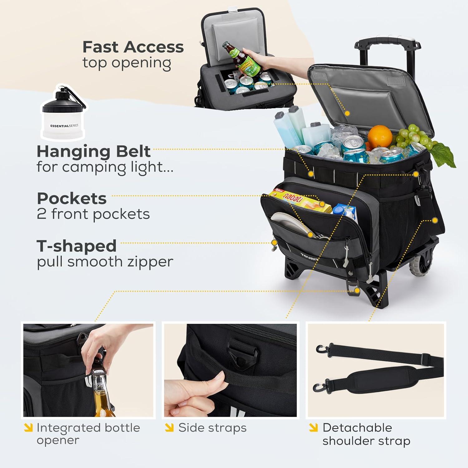 TOURIT Wheeled Cooler: Wheeled cooler features an insulated front compartment and an easy-access lid for quick access to food and beverages; Keeps ice for up to three days and holds up to 48 cans