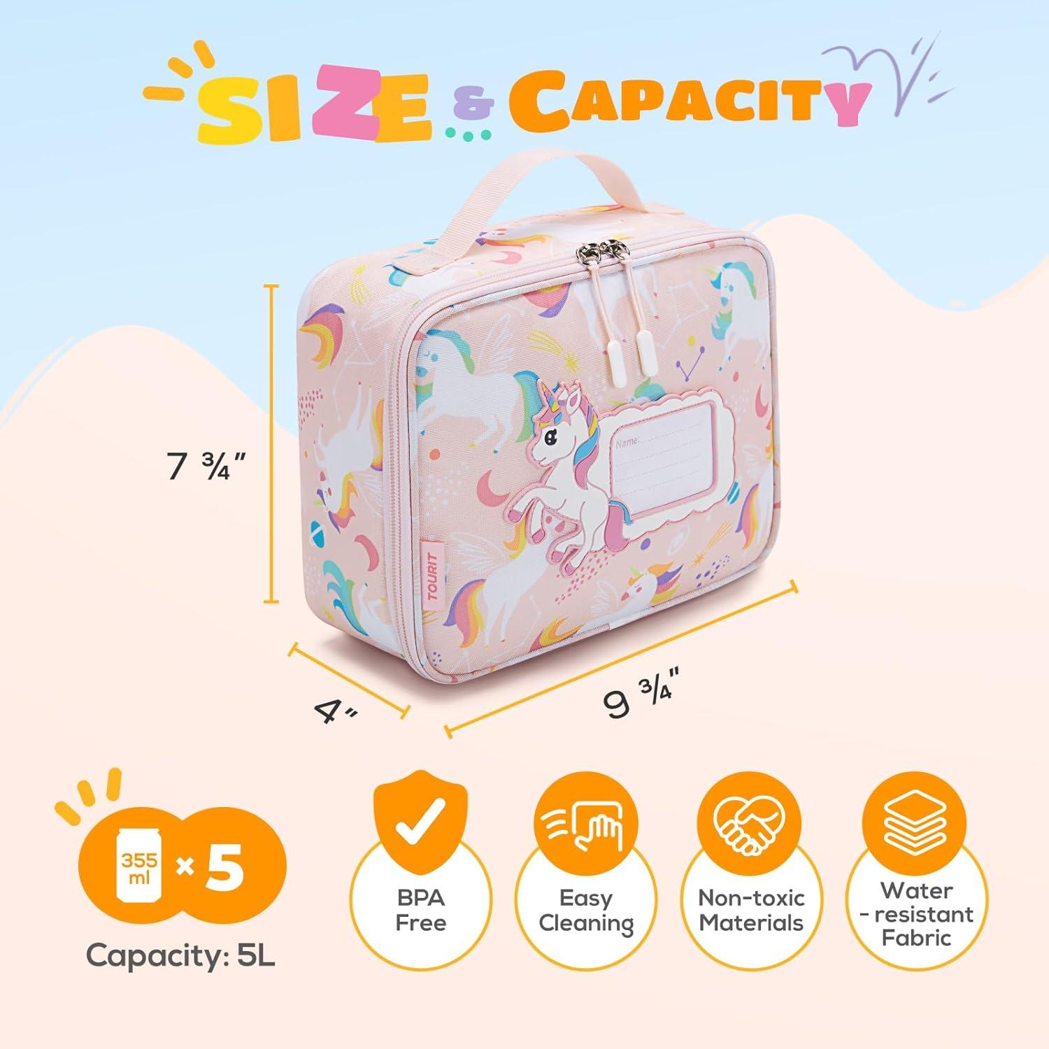 TOURIT Kids Lunch Box Insulated Lunch Bag for Kids with Water Bottle Holder, Water-resistant Lightweight Lunch Tote Bag for Boys Girls to School, Picnics,Unicorn(02-Unicorn)