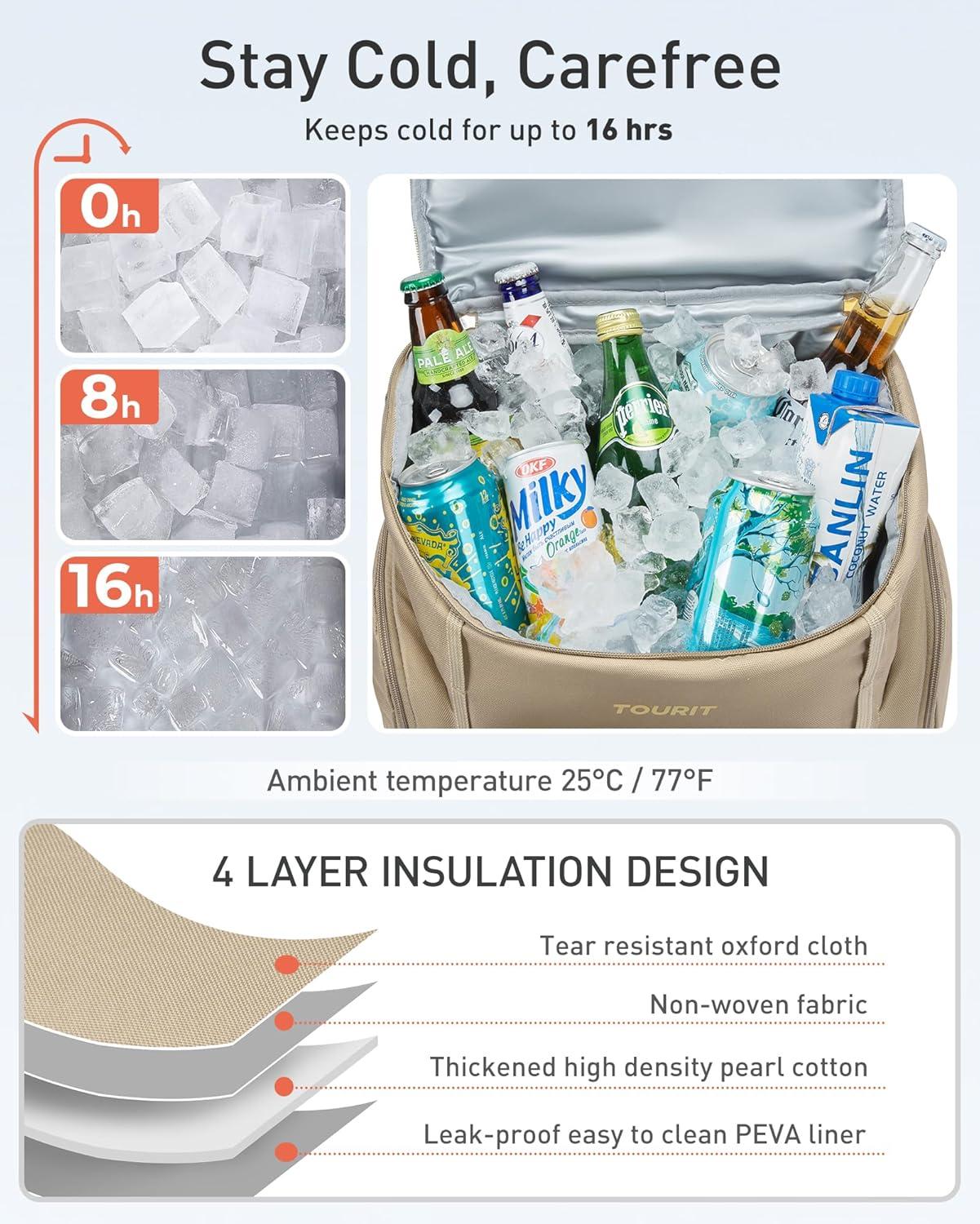 【Long-Lasting Insulation & 100% Leakproof】 The insulated cooler with wheels is lined with 4 layers of thickened foam insulation and a leakproof EVA inner liner, ensuring your food stays cool for up to 16 hours while preventing leaks